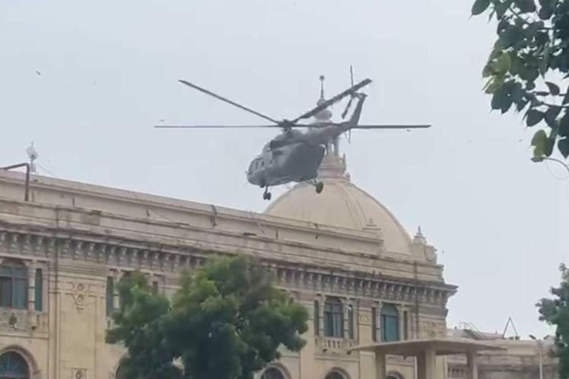 यूपी विधानसभा गेट पर 15 मिनट तक सेना का हेलीकॉप्टर मंडराता रहा।