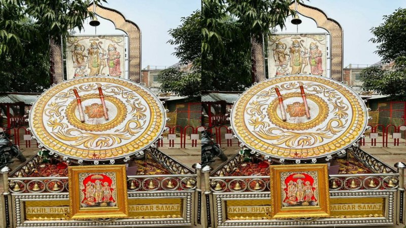 नगाड़ा लेकर आए चिराग पटेल ने बताया कि इस पर सोने और चांदी की परत चढ़ाई गई है। ढांचे में लोहे और तांबे की प्लेट का भी इस्तेमाल किया गया है। इसका निर्माण डबगर समाज के लोगों ने किया है। राम मंदिर में स्थापित करने के लिए हिंदू संस्कृति के इस प्रतीक विशाल नगाड़ा का निर्माण कर्णावती महानगर के दरियापुर विस्तार में किया गया है।