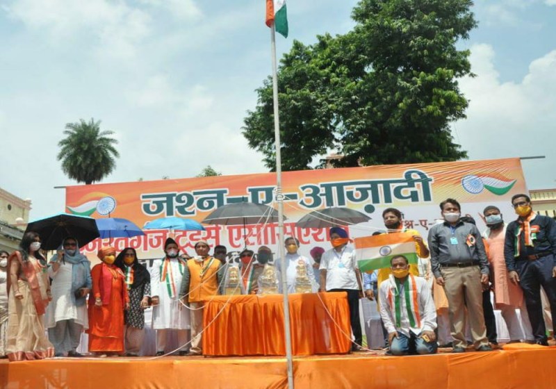लखनऊ। स्वतंत्रता दिवस के अवसर पर जश्न- ए -आजादी ट्रस्ट औऱ हज़रतगंज ट्रेडर्स एसोसिएशन द्वारा हज़रतगंज स्थित हनुमान मंदिर के पास ध्वजारोहण किया गया।विभिन्न धर्म-गुरुओं की मौजूदगी में झंडा रोहण का आयोजन बड़े हर्सोउल्लास के साथ संपन्न हुआ।इस आयोजन में लोक गायिका मालिनी अवस्थी,आनंद वर्धन सिंह, अजय शर्मा,महेश सिंह पटेल,जुनेद सिद्दीकी,विवेक लदानी, जैसी कई हस्तियों को सम्मानित भी किया गया।
