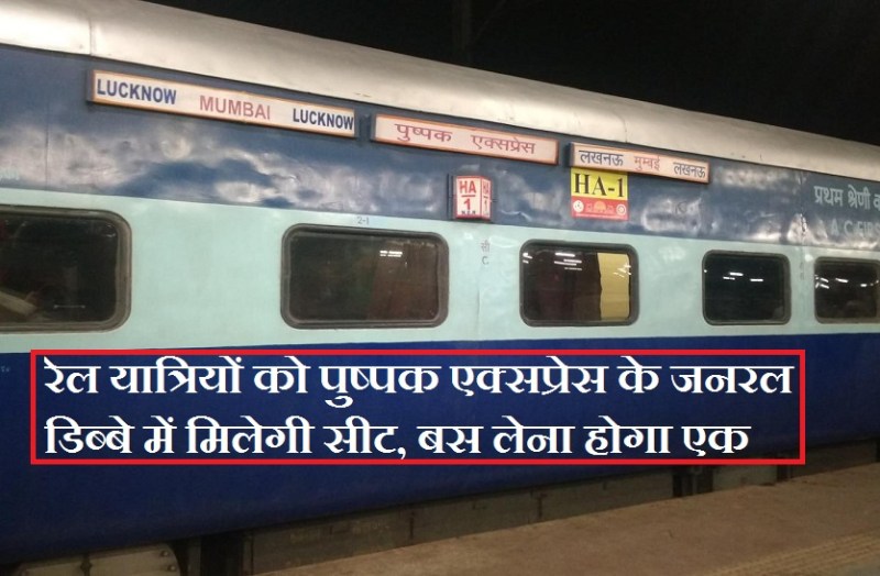 रेल यात्रियों को पुष्पक एक्सप्रेस के जनरल डिब्बे में मिलेगी सीट, बस लेना होगा एक टोकन