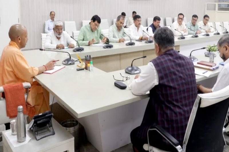 मुख्यमंत्री योगी आदित्यनाथ कावड़ यात्रा को लेकर अधिकारियों के साथ समीक्षा बैठक करते