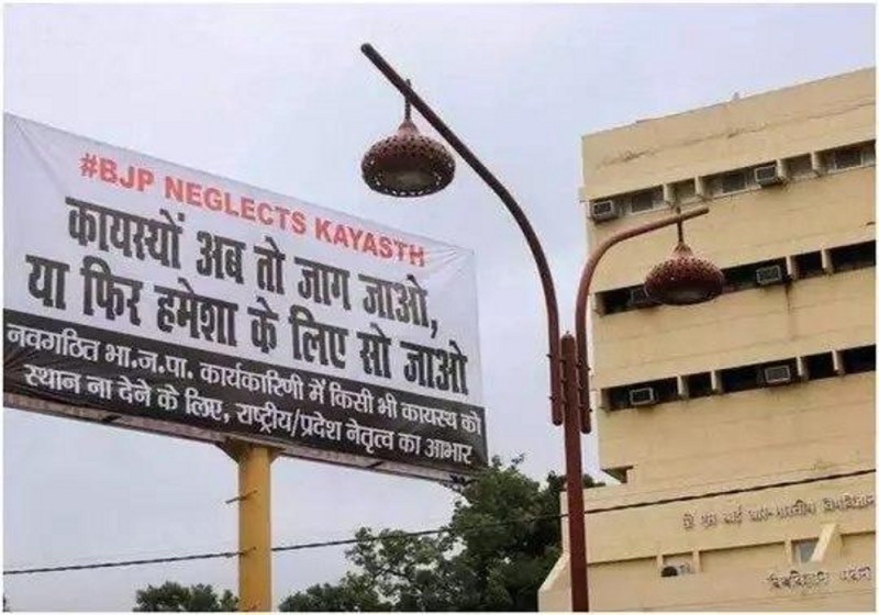 बीजेपी की हाल में ही घोषित नई राज्य कार्यकारिणी में कायस्थ समुदाय को शामिल नहीं करने वाले पोस्टर शहर के मुख्य चौराहों पर लगे हैं। हालांकि, बीजेपी इसे समाजवादी पार्टी और कांग्रेस की साजिश बताते हुए इसे छवि को धूमिल करने का प्रयास करार दे रही है। लेकिन राजनीतिक जानकारों का कहना है कि जनसंघ के समय से पार्टी के लिए वोट कर रहा कायस्थ समुदाय अपने को आहत और निर्वासित महसूस कर रहा है।