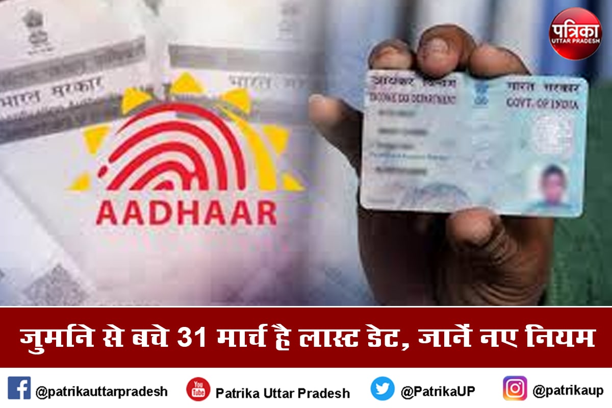 Aadhar Pan link आधार और पैन कार्ड को लिंक कराने की अंतिम तिथि 31 मार्च 2022 निर्धारित की गई है। अगर आपने अभी तक अपने आधार को पैन से लिंक नहीं कराया है तो 31 मार्च से पहले करा लें। 31 मार्च अंतिम डेट निर्धारित की गई है। 31 मार्च से पहले आधार को पैन से ***** कराना जरूरी है। अगर अंतिम डेट से पहले ऐसा नहीं किया गया तो आपका पैन नंबर अमान्य हो जाएगा। पैन के अमान्य होने के बाद आप सरकारी सुविधाओं का लाभ नहीं उठा पाएंगे। असुविधा से बचने के लिए समय रहते आपको पैन को आधार से लिंक करा लेना चाहिए। अगर आपने अंतिम डेट से पहले आधार को पैन से लिंक नहीं कराया तो जुर्माना भी
