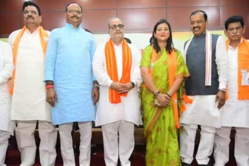 लखनऊ में पार्टी मुख्यालय में प्रदेश भाजपा अध्यक्ष भूपेन्द्र सिंह चौधरी और उपमुख्यमंत्री ब्रजेश पाठक और केशव प्रसाद मौर्य के साथ शालिनी यादव और साहब सिंह सैनी।