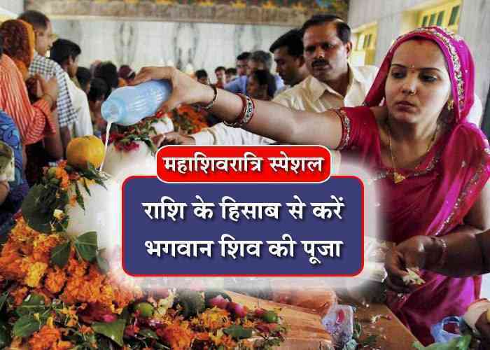 वैसे तो भगवान शंकर आसानी से प्रसन्न हो जाने वाले देव हैं। इसीलिये उन्हें देवाधिदेव महादेव कहा जाता है। लेकिन अगर महाशिवरात्रि पर राशि के हिसाब से भगवान शिव की पूजा की जाये तो विशेष फल देने वाली है। तो आइए जानते हैं कि किस राशि के हिसाब से कैसे करें भगवान शिव की पूजा।