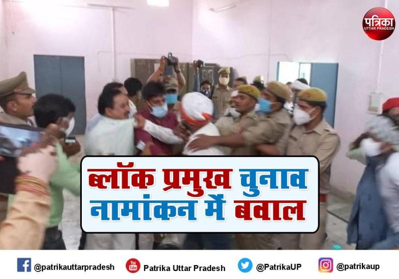 लखनऊ. यूपी में गुरुवार को ब्लॉक प्रमुख चुनाव 2021 के लिए नामांकन दाखिल किए गए। ब्लॉक प्रमुख नामांकन के दौरान यूपी के कई जिलों सीतापुर, कन्नौज, इटावा, बांदा, फर्रुखाबाद, जालौन, हमीरपुर, उन्नाव, बिजनौर आदि में भाजपा और सपा के कार्यकर्ताओं ने जमकर बवाल काटा। अधिकतर स्थानों पर मार पीट हुई, सीतापुर में हथगोले चले और फायरिंग भी हुई। कई जिलों में पुलिस से धक्का-मुक्की हुई पर पुलिसकर्मी अपने बचाव रहे। और जब सब कुछ शांत हुआ तो कई स्थानों पर लाठी चार्ज भी किया। डीएम और एसपी ने जिला प्रशासन और पुलिस प्रशासन को माहौल को देखते हुए सतर्क रहने के निर्देश दिए हैं।