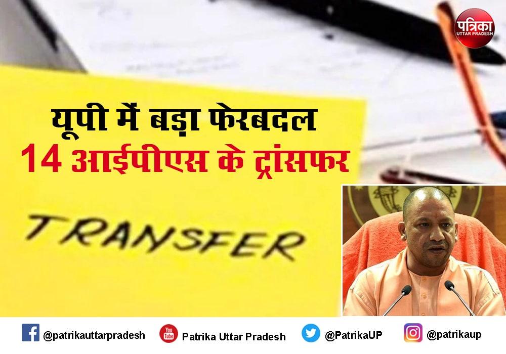 यूपी में सोमवार सुबह 14 आईपीएस के ट्रांसफर, नौ जिलों के एसपी बदले गए