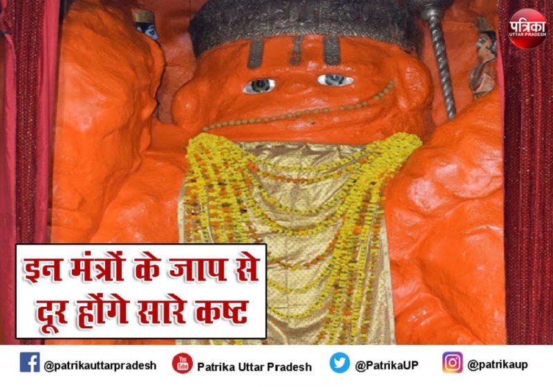 इन मंत्रों का जाप कष्ट दूर करेगा :- हनुमान जी की पूजा अभिजित मुहूर्त में करें। उत्तर-पूर्व दिशा में चौकी पर लाल कपड़ा रखें। हनुमान जी के साथ श्रीराम के चित्र की स्थापना करें। हनुमान जी को लाल और राम जी को पीले फूल अर्पित करें। लड्डुओं के साथ साथ तुलसी दल भी अर्पित करें। आराधना करते वक्त पहले श्री राम के मंत्र राम रामाय नमः का जाप करें फिर हनुमान जी के मंत्र ॐ हं हनुमते नमः का जाप करें।