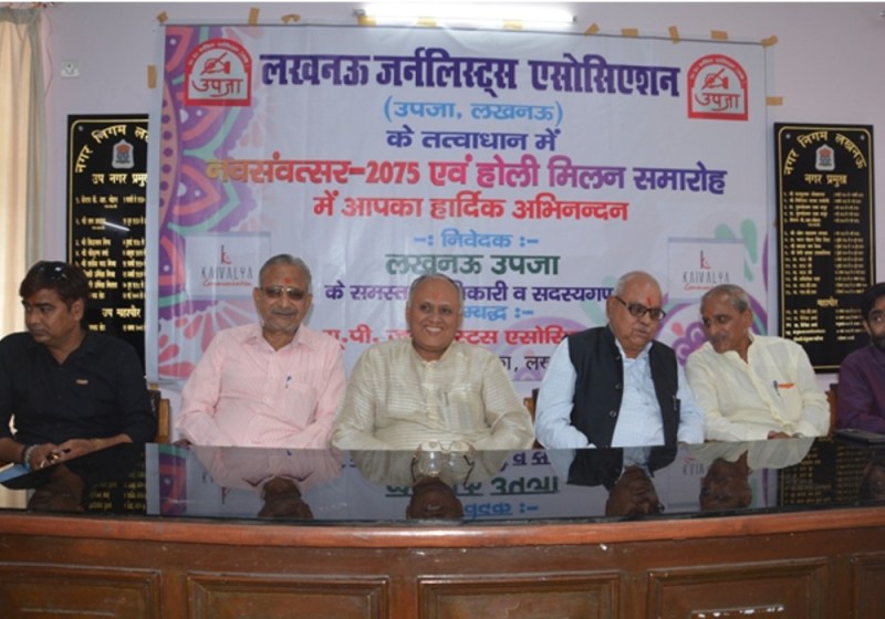 वरिष्ठ पत्रकार प्रमोद गोस्वामी ने कहा कि पिछले तीन दशक में यह आयोजन ऐतिहासिक है। मान्यता प्राप्त संवाददाता समिति के अध्यक्ष और वरिष्ठ पत्रकार प्रांशु मिश्र ने कहा कि लोकतंत्र के रक्षक की भूमिका में मीडियाकर्मियों के समक्ष बहुत चुनौतियां हैं। एमएलसी डॉ राजपाल कश्यप ने कहा कि चुनौतियां से जूझते पत्रकारों के प्रति सरकारों का सहयोगात्मक रवैया होना चाहिए। उपजा के प्रांतीय महामंत्री रमेश चंद्र जैन ने कहा पत्रकार हितों के मुद्दों पर हमाको एक हो जाना चाहिए। अध्यक्षीय भाषण के दौरान वरिष्ठ पत्रकार अजय कुमार ने बताया कि पत्रकारों को तराशनेए संभालने और संवारने का काम ट्रेड यूनियनों का है। ट्रेड यूनियनों की भूमिका पत्रकारों से भी दयनीय है। रामदत्त त्रिपाठी ने कहा तमाम कठिनाइयों के बावजूद पत्रकारिता आज भी सबसे पवित्र कार्य है। वरिष्ठ स्तंभकार निरंकार सिंह ने कहा कि हमारी सभी तिथियां विज्ञान और नक्षत्रों के आधार पर निर्मित हुए हैं। राष्ट्रीय स्वयं सेवक संघ के सह प्रांत कार्यवाह प्रशांत भाटिया ने कहा कि यह एक अच्छी शुरुआत है। पत्रकारों की ओर से भारतीय नववर्ष का आयोजन हो रहा है यह बदलाव की प्रक्रिया है। पूर्व सूचना आयुक्त व वरिष्ठ पत्रकार वीरेंद्र सक्सेना ने कहा कि ऐसे आयोजनों से चेतना और उल्लास बढ़ता है। लखनऊ जर्नलिस्ट्स एसोसिएशन के अध्यक्ष भारत सिंह ने कहा पूरी टीम के सहयोग से ही कार्यक्रम संभव हो सका है। अंत में एसोसिएशन के महामंत्री आशीष मौर्य ने धन्यवाद ज्ञापित किया। इस अवसर पर एसोसिएशन के उपाध्यक्ष रत्नाकर मौर्य व अन्य पदाधिकारियों तथा सदस्यों में आरबी सिंह, अजय कुमार, अजय शर्मा, पल्लव शर्मा, अजय शुक्ला आदि मौजूद रहे। इस मौके पर लखनऊ में कार्यरत विभिन्न इलेक्ट्रॉनिक, प्रिंट व पत्र पत्रिकाओं के करीब 250 पत्रकारों ने सहभागिता की। कार्यक्रम का संचालन अनुपम चौहान, डॉ नवीन सक्सेना, पद्माकर पांडेय और एसवी सिंह ने किया। अंत में वंदे मातरम गायन संज्ञा शर्मा और अनुमेहा शर्मा ने किया।