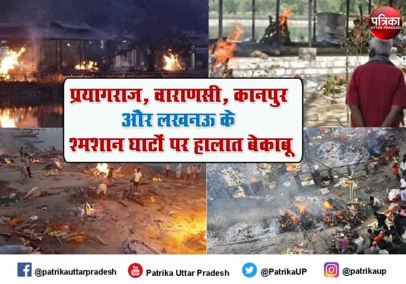 लखनऊ. (Coronavirus in UP) उत्तर प्रदेश की राजधानी लखनऊ में कोरोना संक्रमण के बढ़ते मामलों के साथ हालात बेकाबू हो गये हैं। संक्रमित मरीजों की संख्या के साथ ही कोरोना से मरने वालों की संख्या भी तेजी से बढ़ती जा रही है। लखनऊ के साथ राज्य में सबसे ज्यादा मामले कानपुर, प्रयागराज और वाराणसी में भी सामने आ रहे हैं। इन शहरों की स्थिति दिन ब दिन बिगड़ती जा रही है। अस्पतालों से लेकर श्मशान घाट से रूह कंपाने वाले नजारे देखे जा रहे हैं। स्थिति ये है कि ज्यादातर श्मशान घाटों में शवों को जलाने के लिए जगह भी कम पड़ रही है। लखनऊ के दो श्मशान घाटों गुलाला श्मशान घाट और बैकुंठ धाम की बात करें तो यहां दर्जनों परिवार अपने प्रियजनों के अंतिम संस्कार के लिए तपती दोपहर में इंतजार करते दिख रहे हैं। यहां लगभग हर घंटे, एक नया शव दाह संस्कार के लिए आ रहा है। आलम ये है कि एक तरफ लोग अपने परिजनों की चिता जलाते हैं, तो दूसरी तरफ घाट के कर्मचारी नई चिता तैयार करने में जुट जाते हैं। राजधानी लखनऊ के श्मशान घाटों में काम कर रहे कर्मचारियों का कहना है कि उन्होंने कभी इस तरह की स्थिति नहीं देखी। जितने शव उन्होंने इधर देखे हैं, उतने तो उन लोगों ने पूरे जीवन में नहीं देखे। यही हाल प्रयागराज, वाराणसी और कानपुर के श्मशान घाटों का भी है।