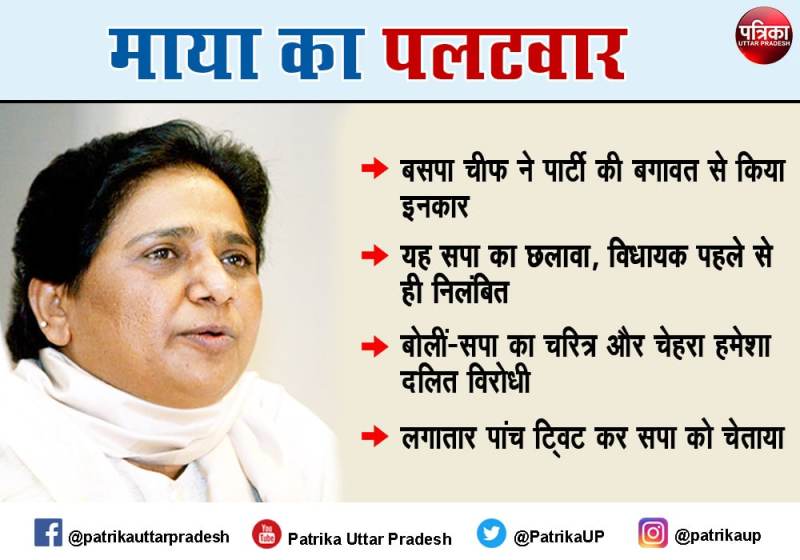 सपा की पोल खोली :- बहुजन समाज पार्टी सुप्रीमो मायावती ने बुधवार को अपने ट्विट पर सपा की पोल खोलते हुए लिखा कि, इन विधायकों को काफी पहले ही सपा व एक उद्योगपति से मिलीभगत के कारण राज्यसभा के चुनाव में एक दलित के बेटे को हराने के आरोप में बीएसपी से निलम्बित किया जा चुका है।
