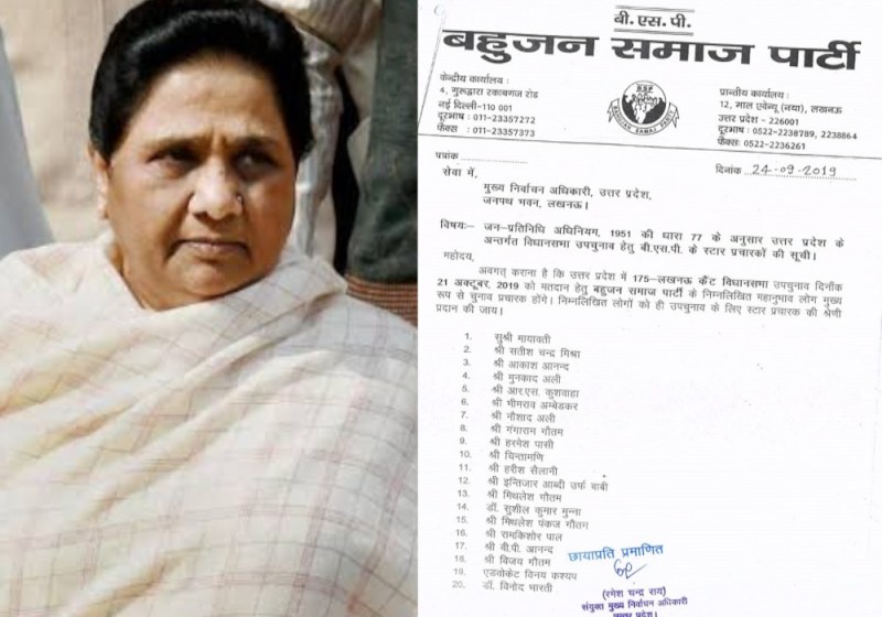 लखनऊ. उत्तर प्रदेश की 11 विधानसभा सीटों पर होने वाले उपचुनाव के लिए बहुजन समाज पार्टी की ओर से स्टार प्रचारकों की सूची जारी कर दी गई है। इस लिस्ट में बसपा सुप्रीमो मायावती को नाम तो सबसे ऊपर है ही, साथ ही भतीजे आकाश आनंद का भी नाम शामिल है। चुनाव आयेाग ने बसपा की स्टार प्रचारकों की लिस्ट पर मुहर लगा दी है। आपको बता दें कि बसपा पहले ही 11 सीटों पर अपने प्रत्याशियों का ऐलान कर चुकी हैं। वहीं चुनाव आयोग भी चुनाव की तारीखों का ऐलान कर चुका है। इन सीटों पर 21 अक्टूबर को मतदान होने हैं वहीं 24 अक्टूबर को नतीजे आएंगे।