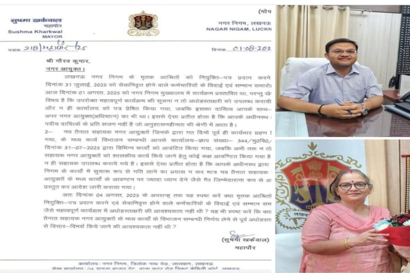 Mayor vs Municipal Commissioner: लखनऊ नगर निगम में 31 जुलाई को आयोजित मृतक आश्रितों को नियुक्ति-पत्र सौंपने और सेवानिवृत्त कर्मचारियों के सम्मान समारोह को लेकर अब सियासी गरमी चरम पर पहुंच गई है। इस समारोह में लखनऊ की महापौर सुषमा खर्कवाल को आमंत्रित नहीं किए जाने पर उन्होंने नगर आयुक्त गौरव कुमार को एक तीखा और कड़ा पत्र भेजा है, जिसमें उन्होंने नगर निगम प्रशासन की कार्यशैली और उनके प्रति दिखाई गई उपेक्षा पर गहरी नाराजगी जताई है। यह पत्र अब सिर्फ एक शिकायत नहीं बल्कि निगम प्रशासन और चुने हुए जनप्रतिनिधियों के बीच संवादहीनता और सत्ता संघर्ष का प्रतीक बनता जा रहा है।