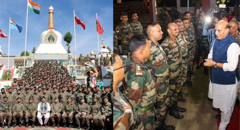 भारत- चीन सीमा पर रक्षामंत्री राजनाथ सिंह ने सेना के जवानों के साथ दशहरा मनाया।