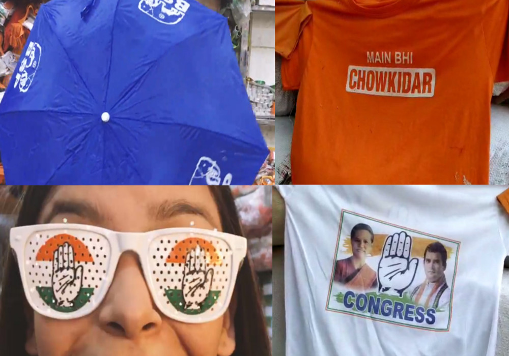 कांग्रेस और भाजपा के शेट में आए सनग्लासेस की बाजार में खूब बिक रहे हैं। यह अलग बात है कि कांग्रेस की ब्रांड लायल्टी बाजी मारेगी या भाजपा के भक्त मोदी को जीत दिलाने में कामयाब होंगे, यह तो आने वाला वक्त ही बताएगा, लेकिन दोनों पार्टियों के चश्मे मात्र 40-50 रुपए में किसी की भी स्टाईल में इजाफा जरूर कर सकते हैं। यह वोटर्स पर निर्भर करेगा कि वह किसका चश्मा खरीद रहा है।