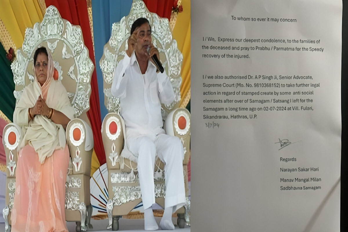 Hathras Satsang Bhagdag: हाथरस जिले के सिकंदराराऊ गांव फुलारी में मंगलवार को हुए भयावह हादसे के बाद पहली बार नारायण हरि बाबा का बयान सामने आया है। बाबा ने इस घटना पर गहरा दुख जताया है और मृतकों के परिवारों के प्रति संवेदना प्रकट की है। उन्होंने अपने बयान में बताया कि वह सत्संग स्थल से पहले ही रवाना हो गए थे और इस हादसे के लिए कुछ असामाजिक तत्वों को जिम्मेदार ठहराया है। बाबा ने सुप्रीम कोर्ट के वरिष्ठ वकील ए.पी. सिंह को कानूनी कार्रवाई के लिए हायर किया है।