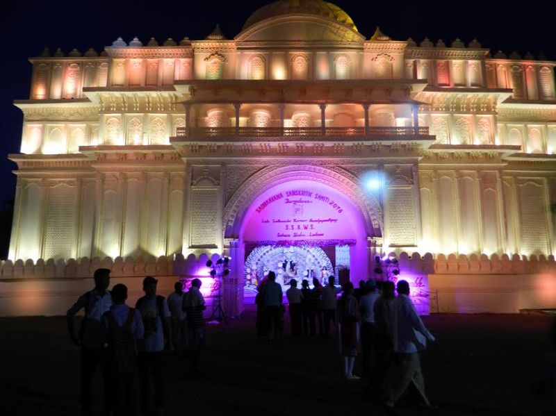 पंडाल की खासियत पंडाल की चौड़ाई-100 फ़ीट ऊंचाई-75 फ़ीट गहराई- 65 फ़ीट चार हज़ार बांस 06 हज़ार मीटर कपडे 03 हज़ार थर्माकॉल पीस