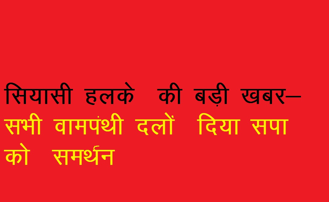 लखनऊ। यूपी की सियासत में एक बड़ी खबर सामने आई है। छोटे दलों के बाद अब वामपंथी दलों ने सपा को समर्थन देने का फैसला किया है। वामपंथी दलों की बैठक मंगलवार को भारत की कम्युनिस्ट पार्टी (मार्क्सवादी) राज्य कार्यालय में सम्पन्न हुई। इस बैठक में भाजपा को पटखनी देने के लिए सभी दलों ने एक जुटता दिखाई है। इस बैठक में भारतीय कम्युनिस्ट पार्टी, भारत की कम्युनिस्ट पार्टी (मार्क्सवादी), भाकपा
