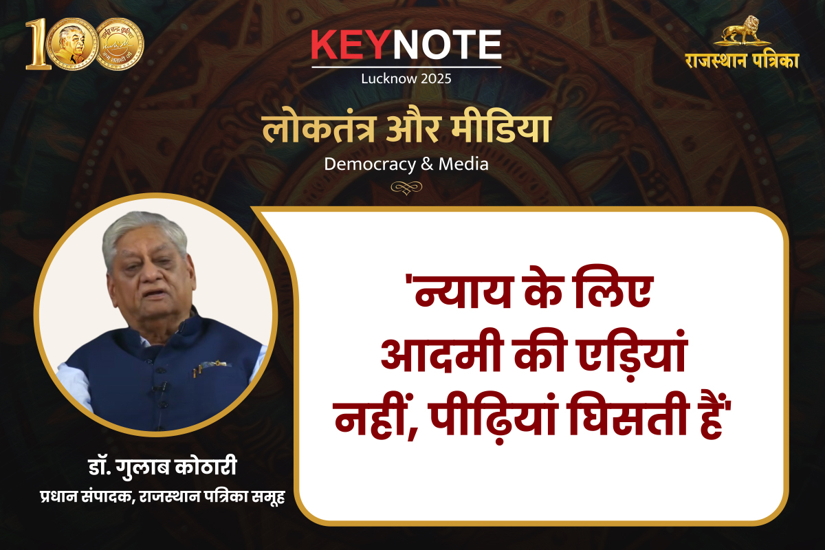Patrika Keynote 2025: पत्रिका की-नोट कार्यक्रम के दौरान पत्रिका समूह के प्रधान संपादक डॉक्टर गुलाब कोठारी ने अपना उद्बोधन दिया। इस दौरान उन्होंने कहा कि उनके मन में आज भी वही सिद्धांत हैं जो उनके पिताजी ने उन्हें बताए थे।