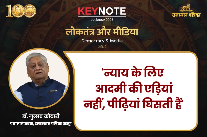 डॉक्टर गुलाब कोठारी ने कहा, 'सच्चाई कड़वी होती है। सामने वाले को आसानी से पचती नहीं है। राजस्थान पत्रिका इन 70 सालों में हर सरकार के लिए विपक्ष की भूमिका निभा रहा है। ऐसी कोई सरकार नहीं आई होगी जिससे हमारी भिड़ंत नहीं हुई हो, लेकिन हम झुके नहीं। इसी का नाम स्वतंत्र प्रक्रिया है। लोकतंत्र से अच्छी कोई विधा शासन के लिए नहीं है। हम बहुत आभारी हैं उन पूर्वजों के जिन्होंने हमें ये लोकतंत्र दिया।'