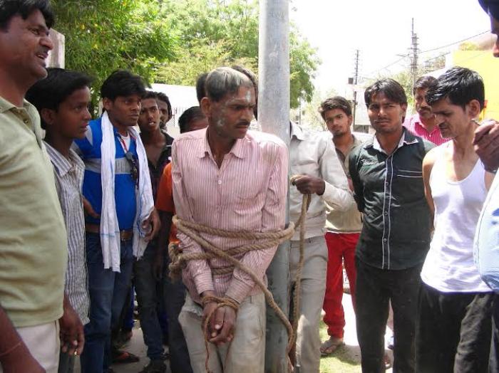 लखनऊ. राजधानी के नाका थानाक्षेत्र में चोरी करने की नियत से गए एक युवक को मजदूरों ने पकड़ लिया और जमकर धुनाई करने के बाद उसे ऐसी सजा दी कि जिसे सुनकर आप की रूह कांप जाएगी। मजदूरों ने देर रात से आरोपी को पकड़ कर रस्सी के सहारे खम्भे से बांधकर जमकर पिटाई की।