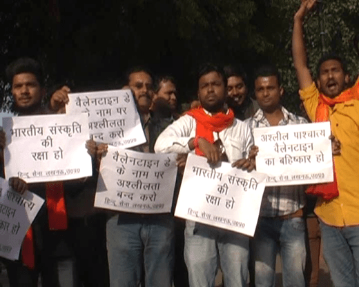 लखनऊ. प्रेमी जोड़े जहां एक तरफ 14 फरवरी को वैलेंटाइन्स डे मनाने की तैयारियों में जुटे हैं तो दूसरी तरफ इसे भारतीय संस्कृति के खिलाफ बताकर कई दल अपने सियासी रोटी सेकने की तैयारी हैं या यूं कहें कि अपनी नेतागिरी चमकाने में जुटे हुए हैं। हिन्दू सेना सहित तमाम धर्म के ठेकेदार ये दावा कर रहे हैं कि वे रविवार को पार्को में जायेंगे और प्रेमी युगल को सबक सिखाएंगे।