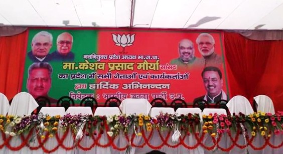 कई कार्यकर्ताओं ने इसे अनुचित ठहराया, तो कुछ का कहना था कि भूलवश ऐसा हो गया होगा। मंच पर लगे बडे बैनर में मौर्य के साथ अटल बिहारी बाजपेयी, लालकृष्ण आडवाणी, प्रधानमंत्री नरेन्द्र मोदी, पार्टी अध्यक्ष अमित शाह और भाजपा के प्रदेश प्रभारी ओम माथुर के चित्र ही नजर आए।