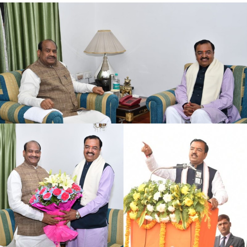 लखनऊ. उत्तर प्रदेश के उपमुख्यमंत्री केशव प्रसाद मौर्य ने शुक्रवार को लखनऊ राजभवन में लोकसभा अध्यक्ष ओम बिरला से शिष्टाचार भेंट की।