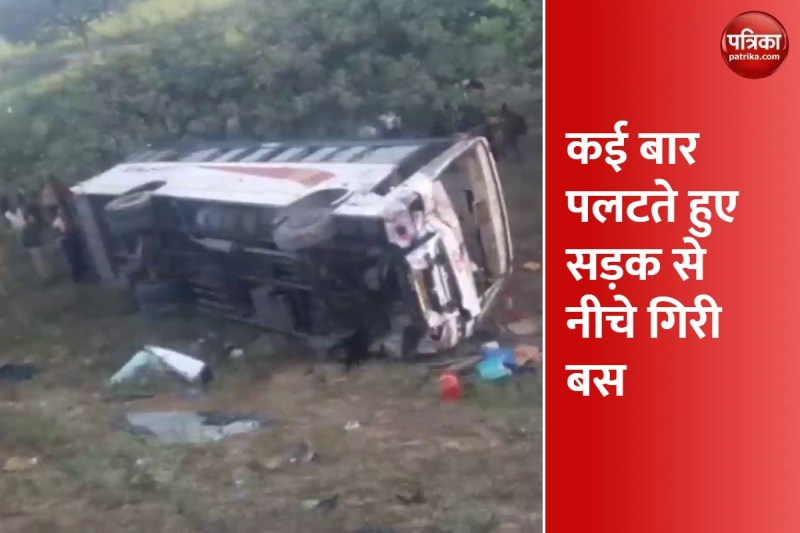 हादसे के बाद एक्सप्रेसवे के नीचे पलटी पड़ी बस