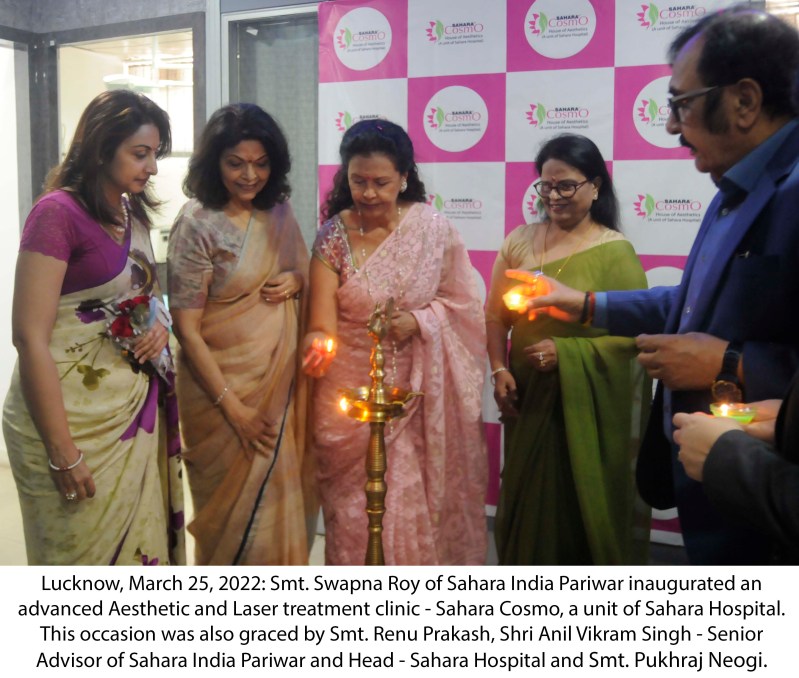 सहारा हॉस्पिटल की यूनिट ‘सहारा कॉस्मो’का उद्घाटन सहारा इंडिया परिवार की स्वप्ना रॉय जी ने सहारा शॉपिंग सेंटर, फै़ज़ाबाद रोड, इंदिरानगर, लखनऊ में किया। इस अवसर पर रेनू प्रकाश, अनिल विक्रम सिंह-सीनियर एडवाइज़र सहारा इंडिया परिवार व हेड-सहारा हॉस्पिटल व श्रीमती पुखराज नियोगी भी उपस्थित थे।