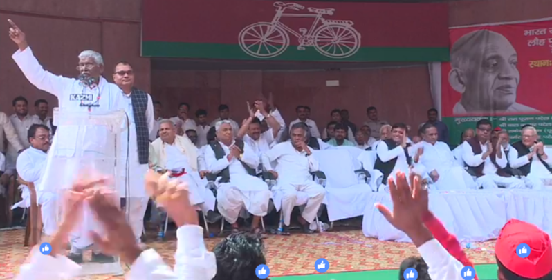 पूर्व केंद्रीय मंत्री और सपा के राज्यसभा सांसद बेनी प्रसाद वर्मा ने कहा कि हमारी पार्टी के युवाओं के पास बेहतरीन मौका है। इस बार चूकना नहीं है। हम सब को अखिलेश यादव के नेतृत्व में 2019 के लोकसभा चुनाव में अपने सपने को पूरा करना है। बेनी प्रसाद वर्मा ने कहा कि इस बार विरोधियों को सबक सिखाना ही है। इस मौके पर पूर्व मंत्री राम पूजन पटेल ने बीजेपी सरकार पर निशाना साधते हुए कहा कि इन लोगों ने हमें ठगा है। अब इन लोगों को सत्ता से हटाना है। इस बीच राम रूजन पटेल ने मंच पर कुछ ऐसा कह दिया जिसपर अखिलेश यादव भी अपनी हंसी नहीं रोक पाए। राम पूजन पटेल ने कहा कि अखिलेश जी से हमने पहले भी कहा था लेकिन उस समय उनकी चलती नहीं थी। इतना सुनते ही वहां मौजूद लोग हंसने लगे। राम पूजन पटेल ने कहा कि अब अखिलेश यादव ही सपा के सर्वे-सर्वा बन गए हैं। अब सपा में सिर्फ उनकी ही चलती है। अब बीजेपी वाले हरे राम - हरे कृष्ण के नाम पर जनता को बरगला नहीं सकते। राम पूजन पटेल के इस बयान ने दो मिनट के लिए मंच का माहौल रोमांचित कर दिया। वहीं इस मौके पर सपा के प्रदेश अध्यक्ष नरेश उत्तम पटेल ने कहा कि अखिलेश यादव पटेल समाज के सच्चे हितैषी हैं। उन्होंने कहा कि सपा के मुखिया अब एक राष्ट्रीय नेता बनने जा रहे हैं।