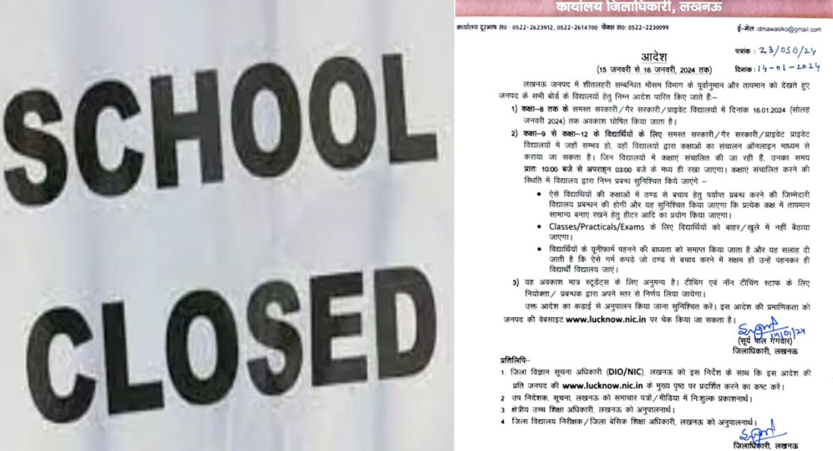शीतलहर की स्थिति को देखते हुए लखनऊ में कक्षा 8 तक के सभी स्कूल 16 जनवरी तक बंद रहेंगे।