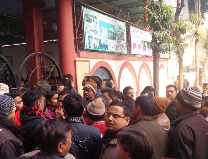 अभिभावकों ने गुरुवार सुबह जमकर हंगामा किया। उन्होंने स्कूल प्रशासन पर बच्चों की सुरक्षा में लापरवाही का आरोप लगाया। अभिभावकों ने ब्राइटलैंड स्कूल की घेराबंदी की। मामला बढ़ता देख ब्राइट लैंड स्कूल प्रशासन ने गेट बंद कर दिया है। अभिभावक स्कूल प्रशासन और पुलिस के खिलाफ नारेबाजी कर रहे हैं। अलीगंज पुलिस ने मौके पर पहुच के भीड़ को शांत कराया। सीओ खुद मौके पर पहुंचीं और लोगों को इस मामले के जल्द खुलासे का आश्वासन दिया।