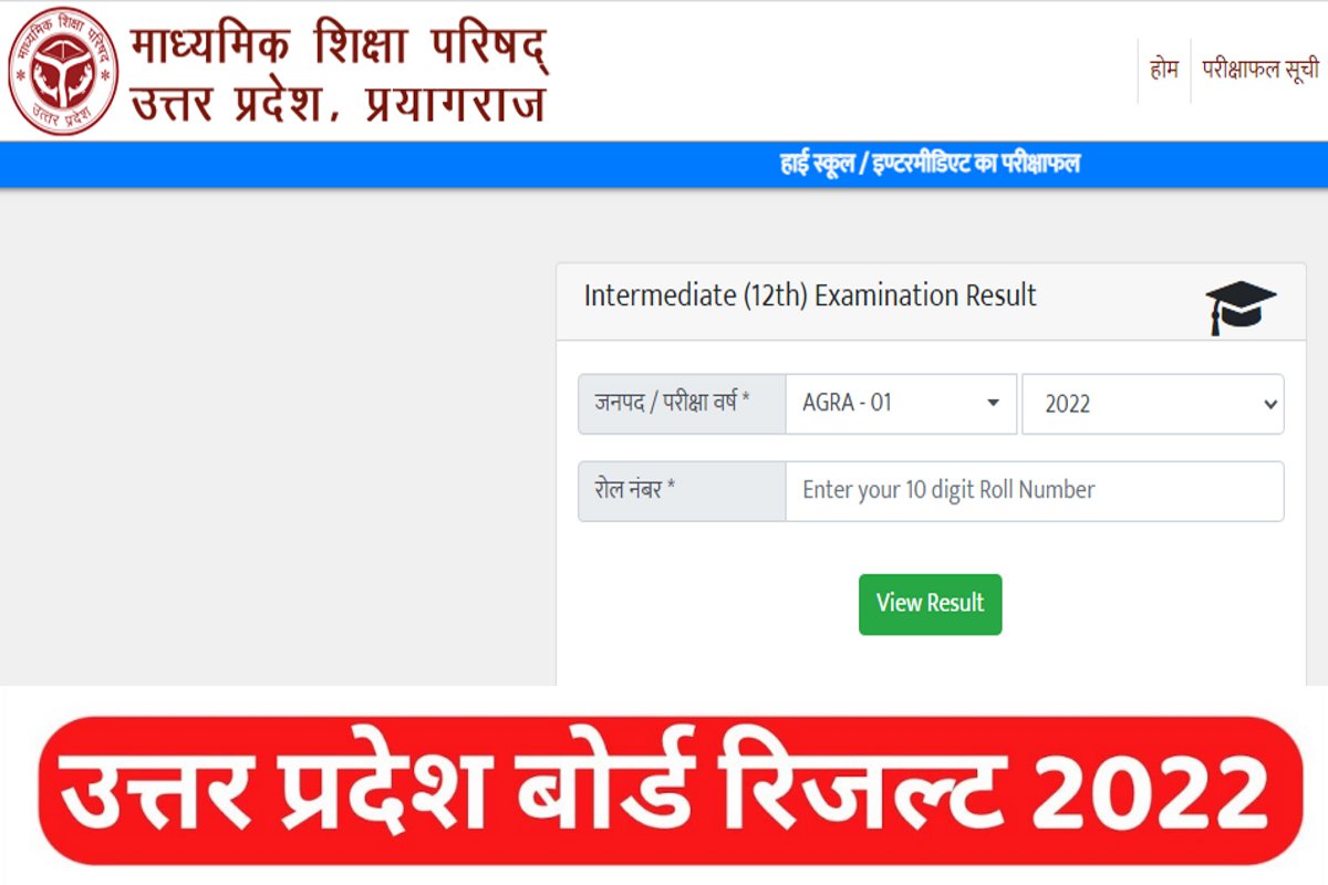 (इण्टरमीडिएट परीक्षाफल वर्ष 2022) लिखा दिखेगा। जिस पर क्लिक करने के बाद नया पेज खुलने पर आपको जिला सिलेक्ट करते हुए अपना रोल नंबर भरकर व्यू रिजल्ट पर क्लिक करना होगा।