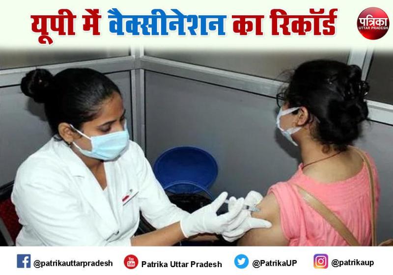 लखनऊ. उत्तर प्रदेश में कोरोना (Coronavirus in UP) टीकाकरण को लेकर नया रिकॉर्ड बना है। यूपी में एक दिन में 10,06,068 लोगों को वैक्सीन (Corona vaccination in UP) लगाई गई, जो अब तक एक दिन में लगाई गई सर्वाधिक कोविड वैक्सीन है। प्रदेश में टीकाकरण को लेकर सरकार द्वारा तमाम प्रयास किए जा रहे हैं। कोरोना के खिलाफ वैक्सीन सबसे कारगर हथियार है। सरकार की कोशिश है कि सभी को इसकी डोज मिले, जिससे तीसरी लीहर से निपटने में भी आसानी हो। फिलहाल यूपी में कोरोना नियंत्रित होता दिख रहा है। प्रदेश में केवल 868 एक्टिव केस हैं। धीरे-धीरे यह आंकड़ा भी कम होता जा रहा है। यह शुन्य पहुंचे, इसके लिए सरकार ने दूसरे कोरोना प्रभावित राज्यों से आने वाले यात्रियों के लिए नियम लागू कर दिए हैं। मुख्यमंत्री भी टीम-9 संग बैठक कर लगातार समीक्षा कर रहे हैं व जरूरी दिशा-निर्देश दे रहे हैं।