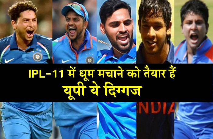 आईपीएल के 11वें सीजन में इस बार उत्तर प्रदेश के नौ खिलाड़ी अपना जलवा दिखाने के बेताब हैं। इनमें टीम इंडिया के धाकड़ खिलाड़ियों में शुमार भुवनेश्वर कुमार, मोहम्मद शमी, कुलदीप यादव और सुरेश रैना अपना हुनर दिखाने को तैयार हैं। वहीं, अक्षदीप नाथ , करण शर्मा, रिंकू सिंह, सरफराज खान और अंकित राजपूत जैसे युवा खिलाड़ी शानदार प्रदर्शन को बेताब हैं। गौरतबल है कि सुरेश रैना लंबे समय से टीम इंडिया से बाहर हैं। हालांकि, उन्हें मौजूदा दक्षिण अफ्रीका दौरे के लिये भारतीय टीम में शामिल किया गया है। पीयूष चावला की भी कोशिश होगी कि टूर्नामेंट में बेहतर प्रदर्शन के जरिये टीम इंडिया में फिर से वापसी की जाये।
