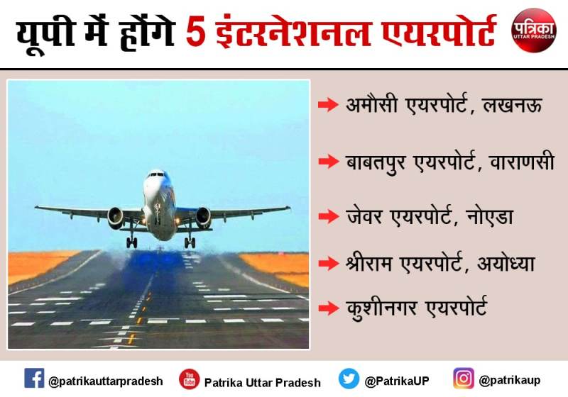 लखनऊ. उत्तर प्रदेश जल्द ही हवाई सेवा में भी देश में नंबर वन होगा। आने वाले एक-दो सालों में यहां पांच इंटरनेशनल एयरपोर्ट होंगे। जल्द ही 21 एयरपोर्ट ऑर सात हवाई पट्टियां ऑपरेट होंगी। उत्तर प्रदेश की तरक्की के लिये योगी सरकार का कनेक्टिविटी पर सबसे ज्यादा जोर है। एक तरफ जहां सूबे में बुलेट ट्रेन दौड़ाने की तैयारी चल रही है तो वहीं दूसरी ओर योगी सरकार प्रदेश में मेट्रो रेल और हाइवे व एक्सप्रेसवे का जाल बिछाने के साथ ही एयर कनेक्टिविटी पर फोकस कर रही है। इस बात की पूरी तैयारी है की 2024 के पहले प्रदेश में पांच एयरपोर्ट से इंटरनेशनल उड़ानें संचालति हों।
