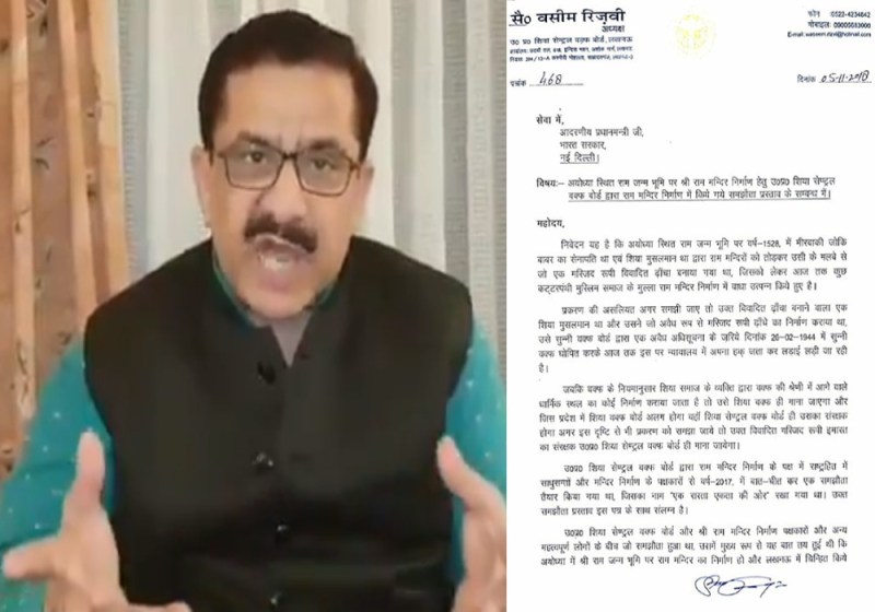 रिजवी ने पत्र के माध्यम से पीएम मोदी से कानून बनाकर राम मंदिर निर्माण शुरु कराने की मांग की है। उनका कहना है कि राम मंदिर निर्माण में कोई अड़चन ना हो तो वक्फ बोर्ड द्वारा राम मंदिर निर्माण के पक्षकारों से किये गये समझौते के आधार पर कानून बनाया जाए। वसीम रिजवी ने आगे कहा कि सच्चाई कड़वी होती है, लेकिन सच्चाई को कोई बदल नहीं सकता है। उन्होंने राम मंदिर निर्माण पर अपनी बात रखते हुए कहा कि जिस बाबर ने साल 1528 में मंदिरों को तुड़वाकर बाबरी का निर्माण कराया, वो बाबरी एक कलंक था। उन्होंने आगे कहा कि जिस बाबरी को ढहे हुए वर्षों बीच चुके हैं, जिसके लिए खूब खून-खराबा हुआ, उसी बाबरी के लिए कुछ लोग फिर से उसी को मुद्दा बना रहे हैं।
