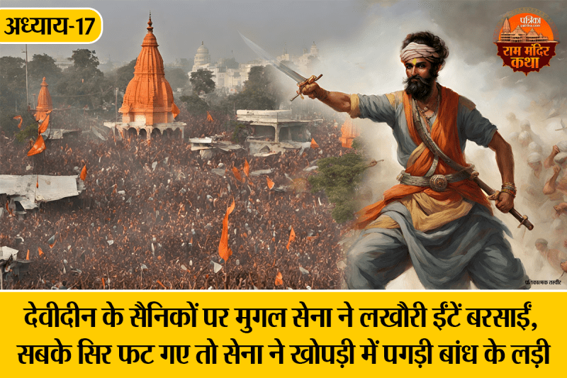 राम जन्मभूमि पर स्थित हिंदुओं के आराध्य का मंदिर टूट चुका था और यह सूचना जंगल की आग की तरह फैल गई। सूर्यवंशी क्षत्रियों के पुरोहित रहे देवीदीन पाण्डेय को जैसे ही सूचना मिली, वह बेचैन हो गए। देवीदीन अयोध्यास्त सूर्य कुण्ड के पास सनेथू गांव के रहने वाले थे। जिनकी विद्वत्ता और वीरता की चर्चा दूर-दूर तक होती थी। कर्मकांडी ब्राम्हण परिवार से रहे देवीदीन मलखंभ, कुश्ती के अलावा शास्त्र के साथ ही शस्त्र संचालन के शौकीन थे। भगवान राम के भक्त देवीदीन पाण्डेय ने ग्रामीणों की ही सेना बना ली और मीर बांकी की सेना का सामना करने निकल पड़े।