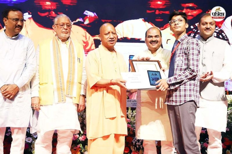 छात्रों को सम्मानित करते सीएम योगी आदित्यनाथ। PC - Twitter