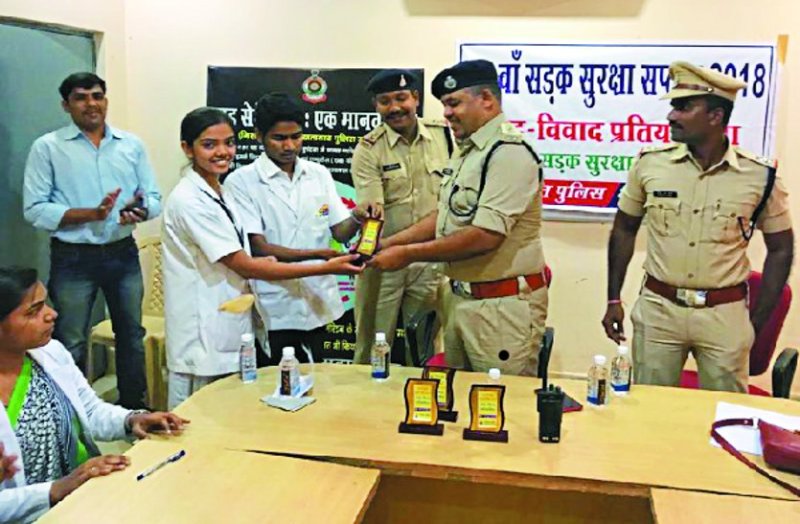 प्रतियोगिता में उत्कृष्ट प्रदर्शन करने वाले छात्र-छात्राओं को उप पुलिस अधीक्षक विनोद कुमार मिंज एवं सूबेदार नितिश आर. नायर ने मोमेेंटो देकर पुरस्कृत किया। साथ ही सडक़ सुरक्षा जीवन रक्षा के विषय पर सडक़ में सुरक्षित आवागमन करने, हेलमेट लगाकर बाइक चलाने, तीन सवारी न बैठने, शराब सेवन कर वाहन नहीं चलाने, सीट बेल्ट का प्रयोग करने, सडक़ संकेत एवं यातयात नियमों का पालन कर सुरक्षित आवागमन करने का संदेश दिया। शनिवार को यातायात पुलिस द्वारा जिला मुख्यालय से लगे ग्रामीण क्षेत्रों में यातायात नियमों का पालन करने पॉम्पलेट का वितरण किया जाएगा। गुरुवार को भी ट्रैफिक पुलिस ने यातायात शाखा परिसर में नेत्र परीक्षण शिविर का आयोजन किया था। इसके तहत करीब 80 वाहन चालकों का नेत्र परीक्षण हुआ।
