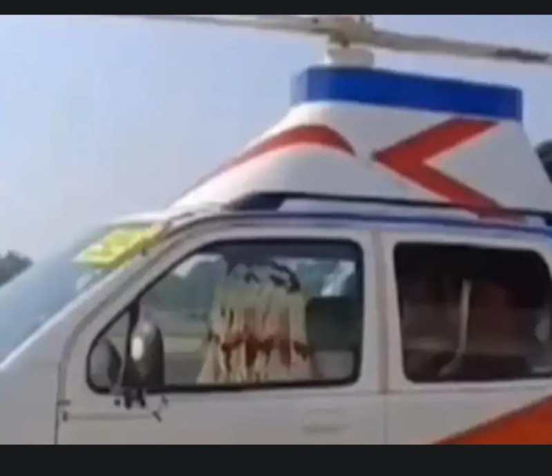 Groom come by helicopter : जिले में सोशल मीडिया पर एक वीडियो तेजी से वायरल हो रहा है। जिसमें एक दूल्हा चार पहिया वाली हेलीकॉप्टर पर बैठकर शादी के लिए सिद्धार्थनगर से बारात लेकर महराजगंज के नौतनवां कस्बे में आया। इस हेलीकॉप्टरनुमा गाड़ी को देखने के लिए काफी भीड़ लगी रही। सभी इसके मॉडिफाई करने वाले मैकेनिक की वाह वाह कर रहे।