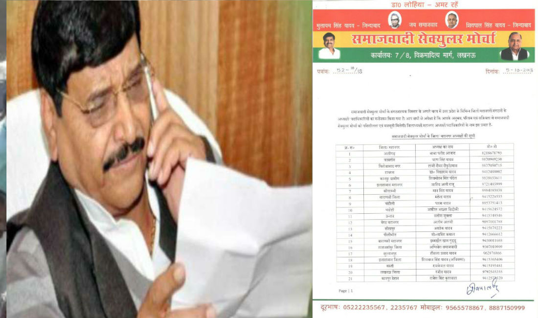 शिवपाल सिंह यादव ने इसके अलावा अलीगढ़ में बाबा फरीद आजाद, कासगंज में चरण सिंह यादव, फिरोजाबाद नगर में हाजी सैयद सैफुर्रहमान, हाथरस में डॉ. विद्याराम यादव को समाजवादी सेक्युलर मोर्चे की जिम्मेदारी सौंपी है। समाजवादी सेक्युलर मोर्चा के वरिष्ठ नेता नीरज यादव ने बताया कि इन प्रकोष्ठों के साथ ही समाजवादी सेक्युलर मोर्चा के मजबूती देने का कार्य शुरू कर दिया जायेगा।
