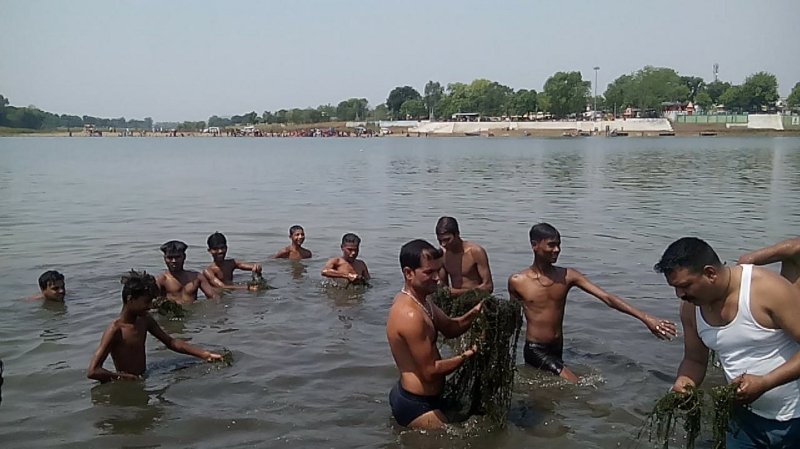 यही कारण है कि क्षेत्र में नर्मदा का पानी तेजी से प्रदूषित हो रहा है इसी प्रदूषित पानी की सफाई के लिए स्थानीय युवकों ने संकल्प लिया और मां नर्मदा के जयकारे लगाते हुए नर्मदा के पानी में कूद पड़े। वार्ड के 20 से 25 युवाओं ने घाट को एक सिरे से दूसरे सिरे तक साफ किया। घाट पर न सिर्फ प्रदूषित सामग्री बल्कि कबाड़ भी बड़ी मात्रा में फेंका गया था। इन सभी को निकाला गया, नर्मदा में दूर तक जमी मिट्टी, गंदगी को हाथों से निकाल निकाल कर बाहर किया। नर्मदा में जमी मिट्टी, कापु को निकालने का प्रयास किया गया। युवाओं ने अपने हाथों से ही नर्मदा में जमे गंदगी और कीचड़ को निकाल कर किनारे इक_ा करना शुरू किया। स्थानीय लोगों से अपील भी की कि नर्मदा में किसी भी तरह का प्रदूषित पदार्थ विशेष रूप से पॉलिथीन बिल्कुल ना फेंका जाए।