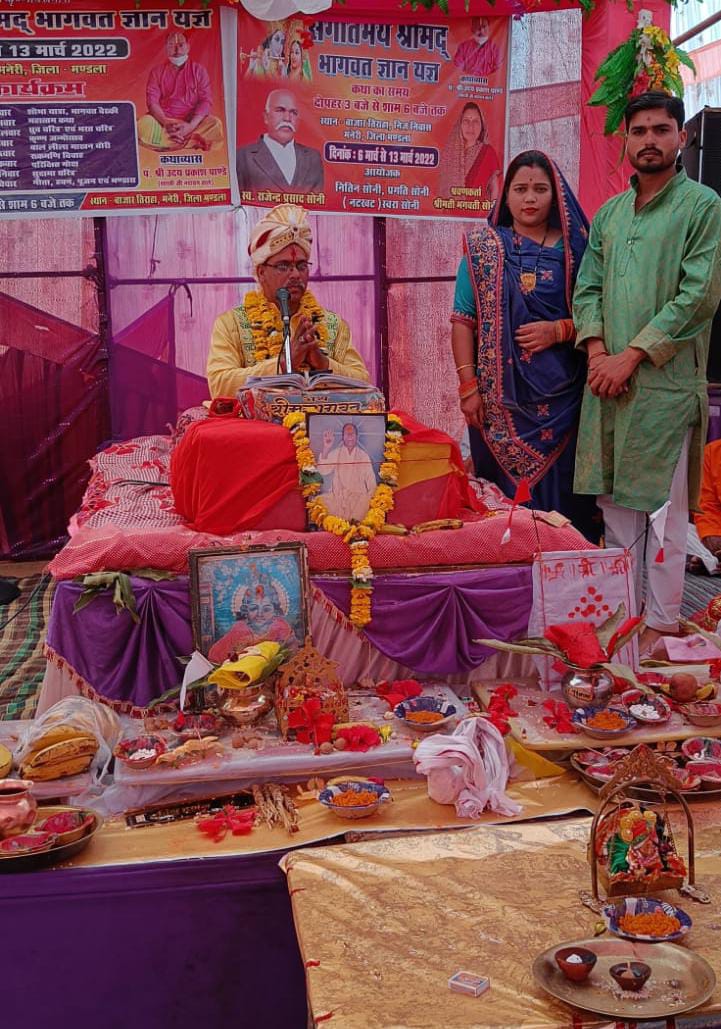 मंडला। मनेरी में सोनी परिवार द्वारा संगीतमयी श्रीमद भागवत पुराण का आयोजन कराया जा रहा है। कथा वाचक पं. उदय प्रकाश शास्त्री द्वारा संगीतमयी कथा सुनाई गई। कथा सुनने रोजाना बड़ी संख्या में ग्रामवासी पहुंचकर धर्म लाभ ले रहे हैं। बताया गया कि यह आयोजन स्व. राजेंद्र सोनी के पुत्र नितिन सोनी, प्रमोद सोनी, रवि सोनी, संतोष सोनी, विमल सोनी एवं परिजनों द्वारा आयोजित किया गया है। जिसके जीवन में दया धर्म क्षमा हैं वही ईश्वर को महसूस कर सकता है। आयोजकों ने बताया कि आज पूजन, हवन के बाद विशाल भण्डारा का आयोजन किया जाएगा। आज राजा परीक्षित के मोक्ष की कथा सुनाई जाएगी। कन्या भोज, भण्डारा के साथ आयोजन का समापन होगा। सोनी परिवार द्वारा अधिक से अधिक लोगों से इस धार्मिक आयोजन में शामिल होने की अपील की गई है।