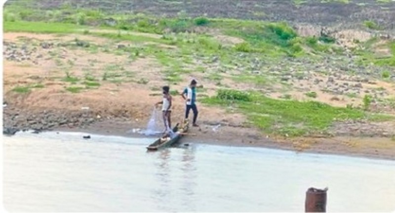 नर्मदा नदी में मछुआरे बेखौफ पकड़ रहे मछली
