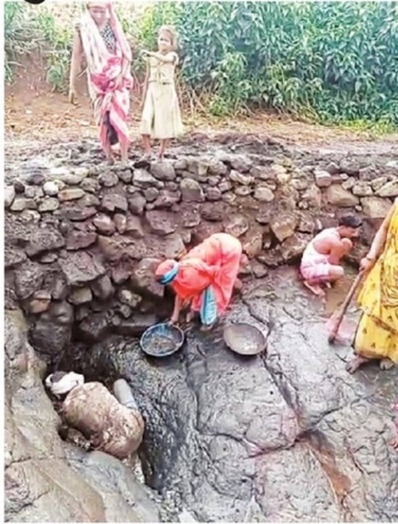 हैंडपंप नहीं कर रहे काम, झिरिया के पानी से प्यास बुझा रहे कटंगी के ग्रामीण