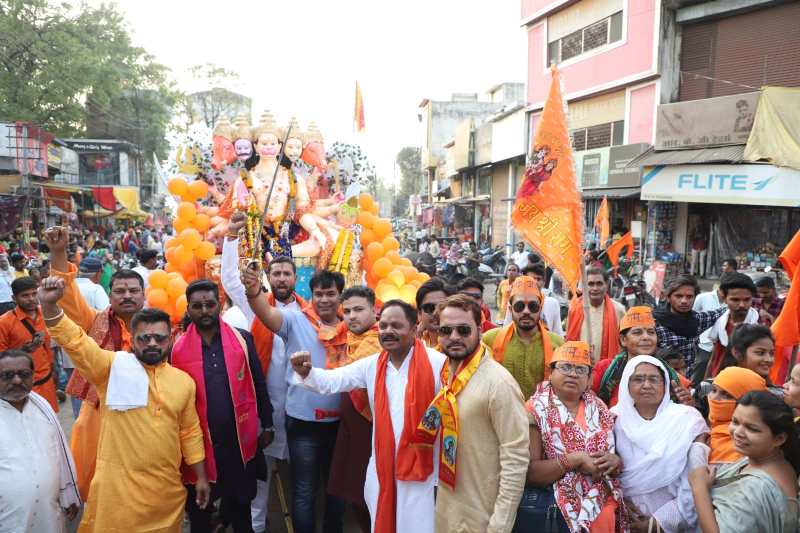 उदय चौक से हनुमान जन्मोत्सव पर भव्य शोभायात्रा की शुरूआत शनिवार को शाम करीब 5 बजे से हुई। जिसमें सैकड़ों के संख्या में श्रीराम, हनुमान भक्त शामिल हुए थे। तरह-तरह के डीजे, ढोल, बैंड में बज रही धार्मिक गीतों की धुन में शोभायात्रा में शामिल हनुमान भक्त झूम रहे थे, बीच-बीच में जय वीर बजरंगी, जय श्रीराम के नारे से सारा वातावरण गुंजायमान हो रहा था।
