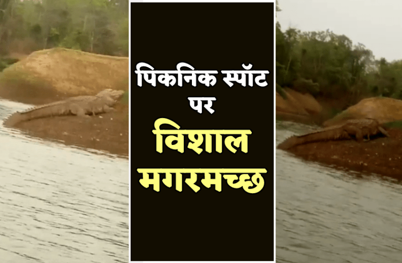 पिकनिक स्पॉट के कुंड में दिखा विशाल मगरमच्छ, बड़ी संख्या में यहां नहाते हैं पर्यटक