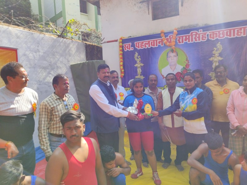 मंडला. जिला कुश्ती संघ एवं बजरंग व्यामशाला प्रबंधन समिति के सहयोग से बजरंग व्यामशाला के खेल प्रांगण में संदीप कछवाहा एवं प्रदीप कछवाहा के तत्वावधान में अंडर 20 बाल केसरी एवं मंडला कुमारी (बालिका) कुश्ती वेट चैंपियनशिप का आयोजन किया गया। यह प्रतियोगिता बालक वर्ग 40 किलोग्राम, 57 किलोग्राम एवं 57 प्लस किलोग्राम वहीं बालिका वर्ग में मंडला कुमारी 42 किलोग्राम एवं 42 प्लस किलोग्राम भार वर्ग में जिले के पहलवानों के मध्य आयोजित कराई गई। इस वर्ष प्रतियोगिता में कछवाहा परिवार के द्वारा मंडला के उन प्रशिक्षकों का भी सम्मान किया गया जो कि अलग-अलग खेल में दिन रात मेहनत करके खिलाड़ियों को तैयार करते हैं और राज्य एवं राष्ट्रीय स्तर पर मंडला को गौरवान्वित करा रहे हैं। प्रशिक्षक फुटबॉल में पंकज उसराठे, खो-खो में आकाश खत्री, हैंडबॉल में सोनम कछवाहा, कुश्ती में शिवम सिंधिया, तीरंदाजी में जसवंत सिंह, एथलेटिक में देवेंद्र कुमार, वुशू में पूर्णिमा रजक, क्रिकेट के लिए सत्यम बर्मन को स्मृति चिन्ह एवं सम्मान पत्र के द्वारा सम्मानित किया गया। प्रतियोगिता का संचालन जिला कुश्ती संघ के कार्यकारी सचिव संदीप कछवाहा के द्वारा किया गया। साथ ही निर्णायक की भूमिका शिवम सिंधिया, वाजिद खान, कुलदीप सिंधिया एवं सतीश मरकाम ने निभाई।